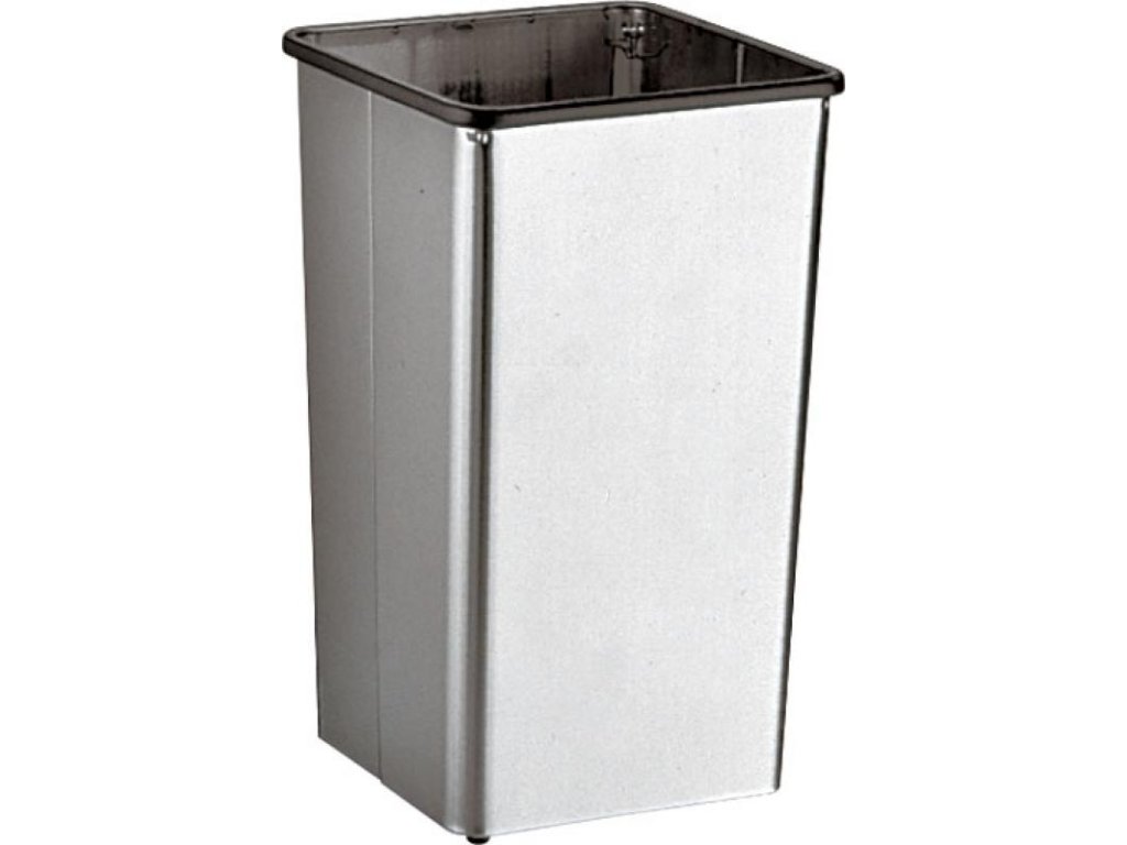 Odpadkový kôš stojací otvorený, matný nerez, 49 l, 320x320x560 mm. Má háčiky na uchytenie plastového vreca, horná hrana olemovaná plastovou lištou.