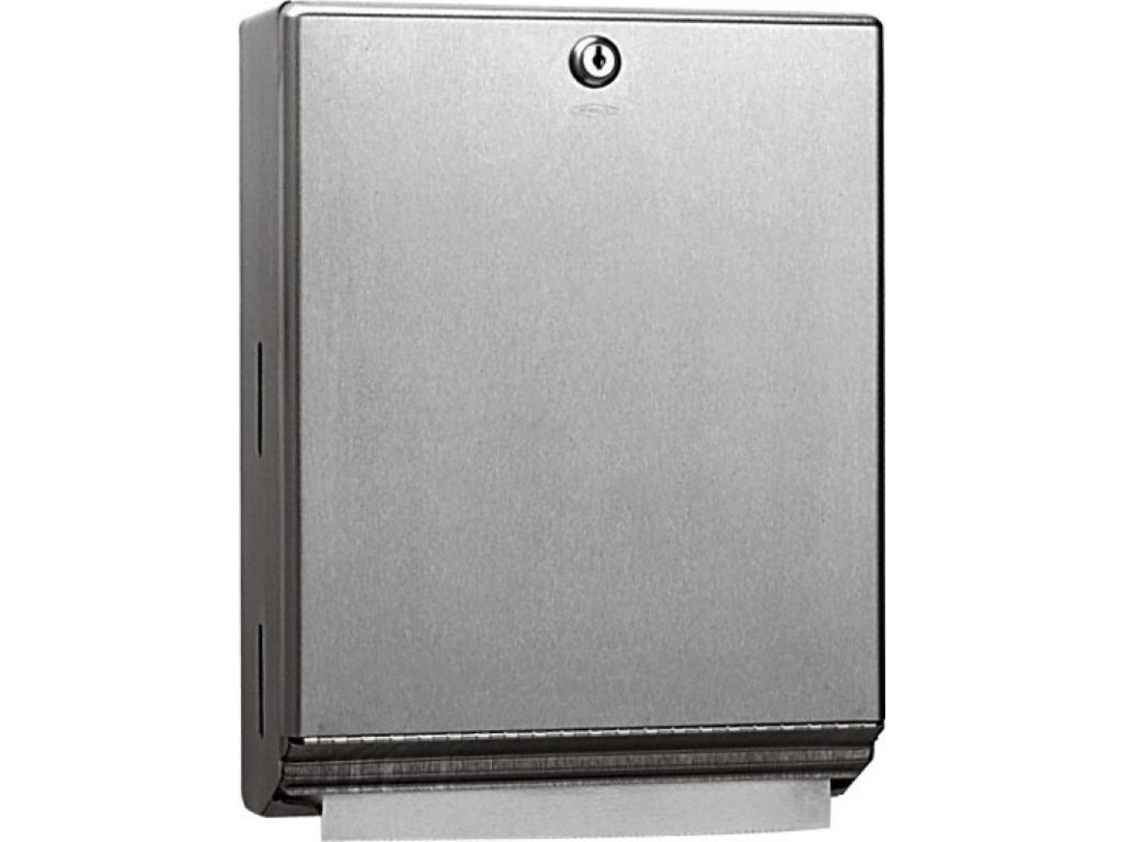 Nerezový zásobník na papierové uteráky nástenný, 100x275x355 mm, uzamykateľný, odolný proti poškodeniu.
