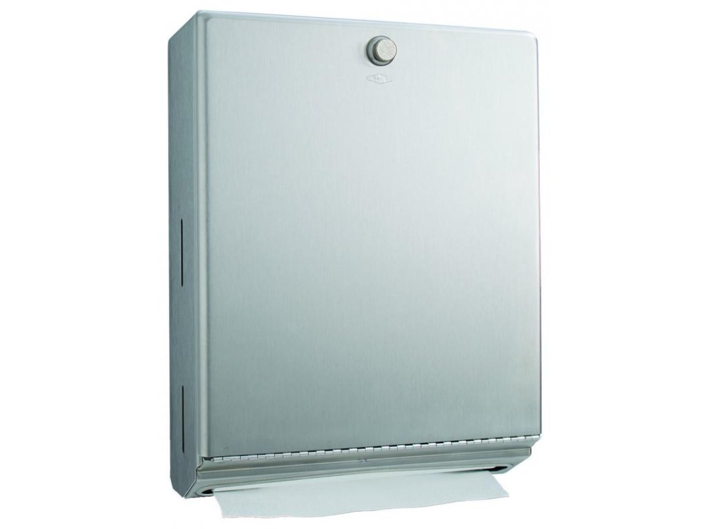 Zásobník na papierové uteráky nástenný, matný nerez, otváranie ovládané otočným gombíkom, náplň cca 500 uterákov "Z", 100x275x355 mm