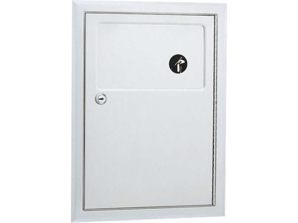 Vstavaný hygienický kôš, matný nerez. Výklopné veko, uzamykateľný, plastová vložka. Rozmery: vonkajšia časť: 3x325x435 mm, vstavaná časť: 100x275x385 mm