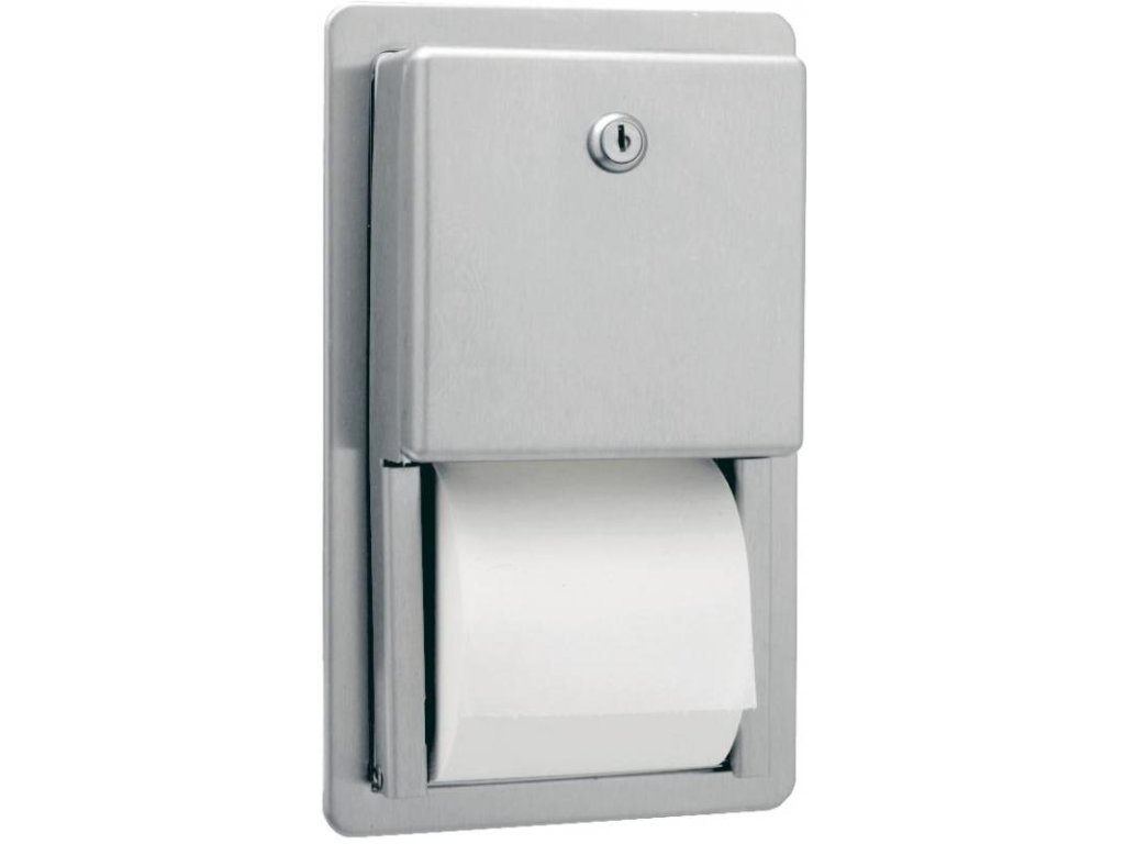 Vstavaný zásobník na 2 štandardné rolky, matný nerez, vstavaný. Po spotrebovaní spodnej rolky poistka uvoľní záložnú rolku, ktorá spadne do spodnej polohy pripravená na užívanie. Uzamykateľný. Rozmery: vonkajšia časť: 75x190x320 mm, vstavaná časť: 76x155x280 mm