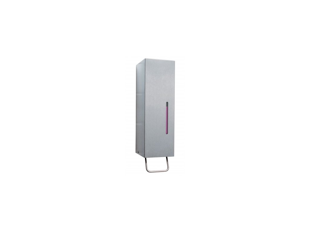 Zváraná chromniklová oceľ, 0,8 mm 1.4301, Typ CrNi 18/10, nerezové oceľové puzdro so saténovým povrchom; nerezová oceľová páka na obsluhu; kovový zámok a kľúč; indikátor hladiny mydla; vymeniteľné plastové nádoby s plastovými pumpami; k dispozícii rôzne plastové nádoby vrátane nádob s pumpami na mydlo alebo penu. Kód produktu pre dávkovanie mydlovej peny je V26627