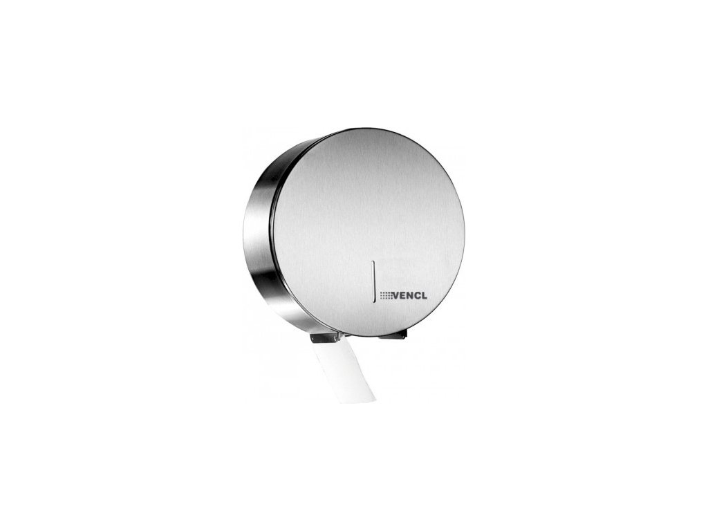 Okrúhly dávkovač toaletného papiera pre priemyselné role 250/300 m, na povrchové pripevnenie. Manuálne dávkovanie. Pevný a odolný proti vandalizmu. Vhodný pre zariadenia s veľmi vysokou frekvenciou návštev. Materiálové prevedenie: nerez, alebo biely kov