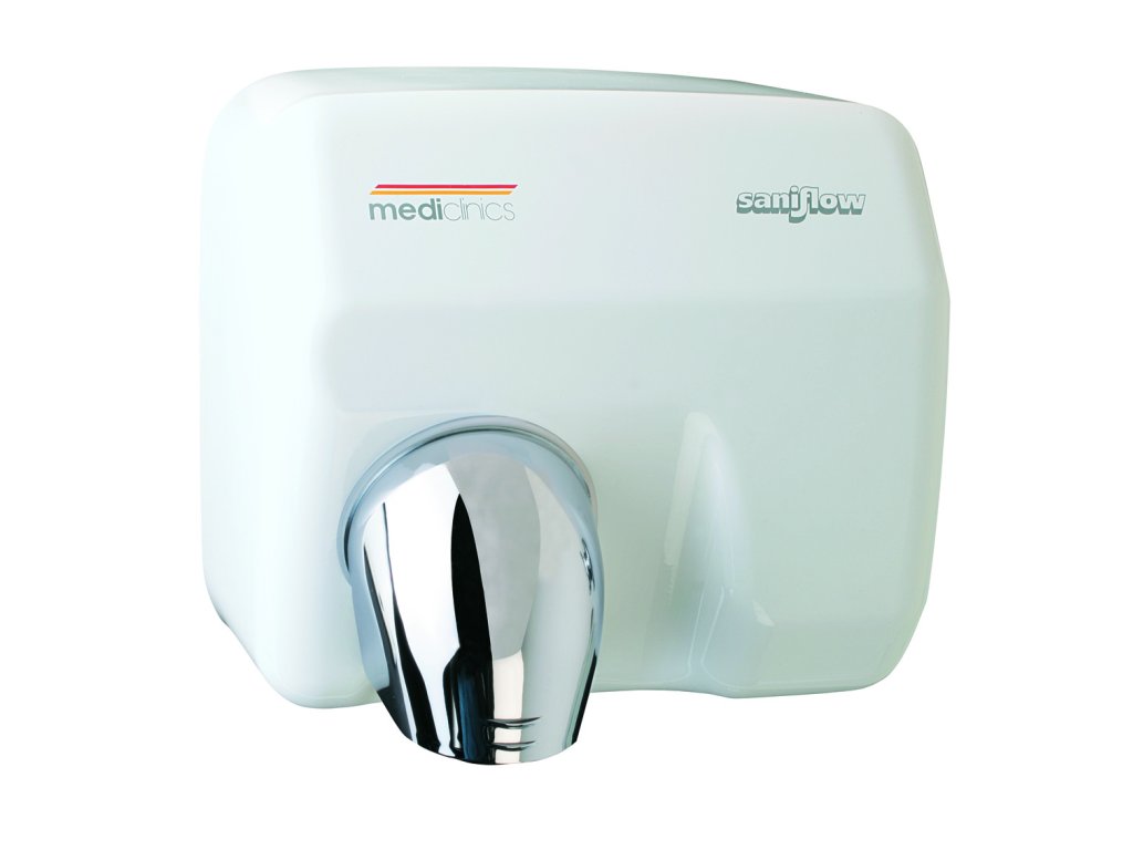 Automatický sušič rúk Saniflow® je sušič s rotačnou tryskou, ktorá je najrozšírenejšia na svete, bez ohľadu na miesto, kde má byť inštalovaná. Tieto zariadenia sa vyznačujú ľahkou údržbou, nízkou hladinou hluku a vysokou úrovňou bezpečnosti používateľov. Spolu s presným dizajnom komponentov majú SANIFLOW sušiče najvýkonnejší prúd vzduchu na svete, ktorý v kombinácii s vyhovujúcou teplotou sušenia skracuje čas sušenia na minimum. Dostupné sú v materiálovom prevedení krytu z ocele s hrúbkou 1,5 mm, s bielym alebo čiernym povrchom, alebo z nehrdzavejúcej ocele s hrúbkou 1,5 mm, s lesklým alebo matným povrchom. Tento sušič rúk je ideálny pre kúpeľne s vysokou návštevnosťou. Tieto modely sú overené s dlhou trvácnosťou a úplnou spoľahlivosťou, odolné proti vandalizmu a navrhnuté na inštaláciu na miestach s vysokým pohybom ľudí, ako sú letiská, veľké hotely, športové centrá, rozsiahle rekreačné oblasti a veľké organizácie.
