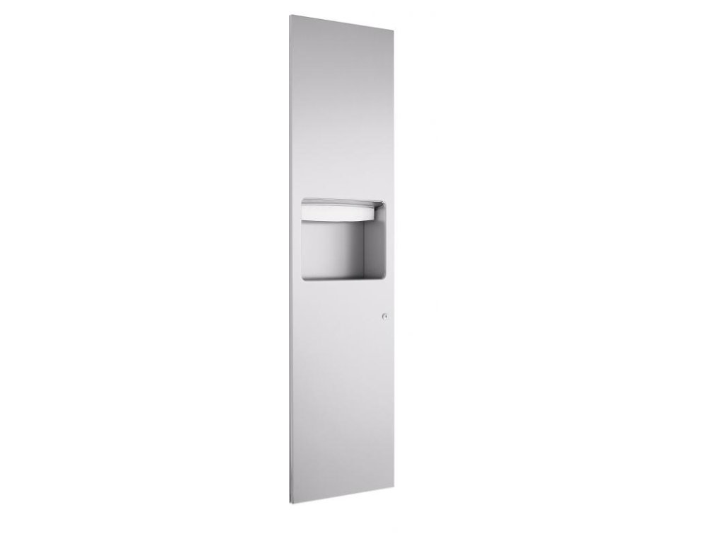 Nerezový zásobník na papierové uteráky (750 ks) & odpadkový kôš vstavaný (13 l). 10x298x1198 mm. Na objednávku je možné pripraviť vo farebných odtieňoch škály RAL